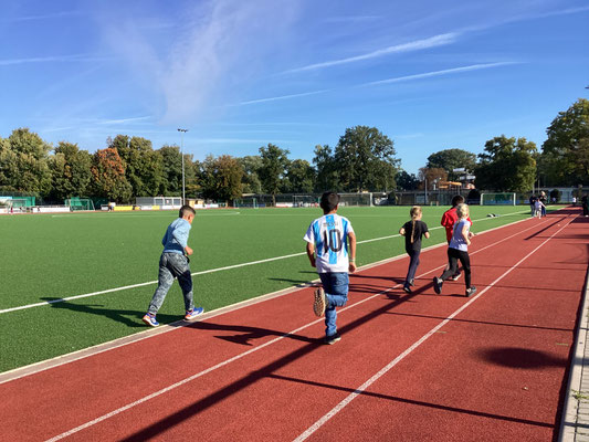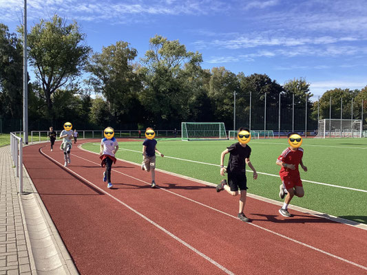 Jahrgang 2 war noch nicht ganz fertig mit seinem Lauf, da enterten schon die Ersties ganz aufgeregt die Laufbahn für insgesamt 30 Minuten und absolvierten ihren ersten Sponsorenlauf mit Bravour.