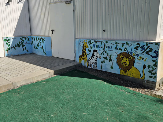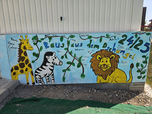 Zum Abschied haben sich alle Viertklässler noch auf dem Schulgebäude verewigt.