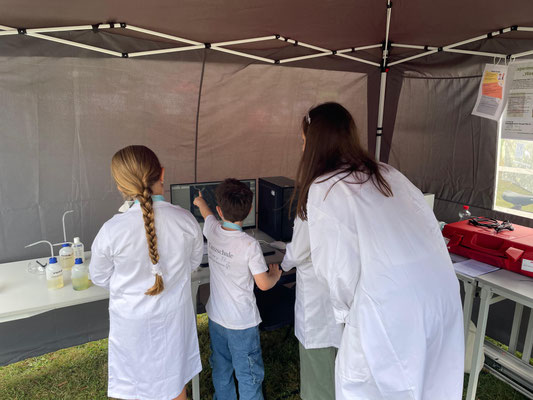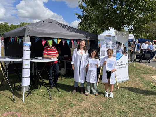 An unserem Stand präsentierten wir allen Interessierten das Schülerlabor und erklärten, was es damit auf sich hat. Bei kleinen Experimenten durften alle Kinder selbst Hand anlegen und ausprobieren wie es so als kleine Chemiker ist. Ob wir vielleicht den ein oder anderen dafür begeistern konnten? Es war auf jeden Fall ein tolles Erlebnis!