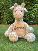 Im Unterricht begleitet uns unser Klassentier, Gerda die Giraffe.